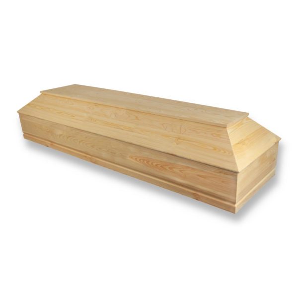 Trumna „Węgierska Kremacyjna” wykonana jest z sezonowanego drewna sosnowego. Ułożenie desek wzdłuż dna trumny gwarantuje dużą wytrzymałość i szczelność. Maksymalna wytrzymałość udźwigu trumny to 160kg. Trumna jest pokryta lakierem matowym. Trumna o wadze 35kg